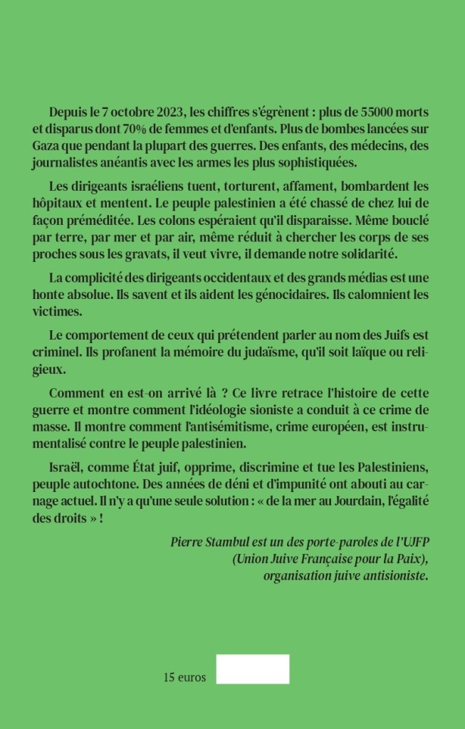 Pierre Stambul est un des porte-paroles de l’UJFP (Union Juive Française pour la Paix), organisation juive antisioniste.